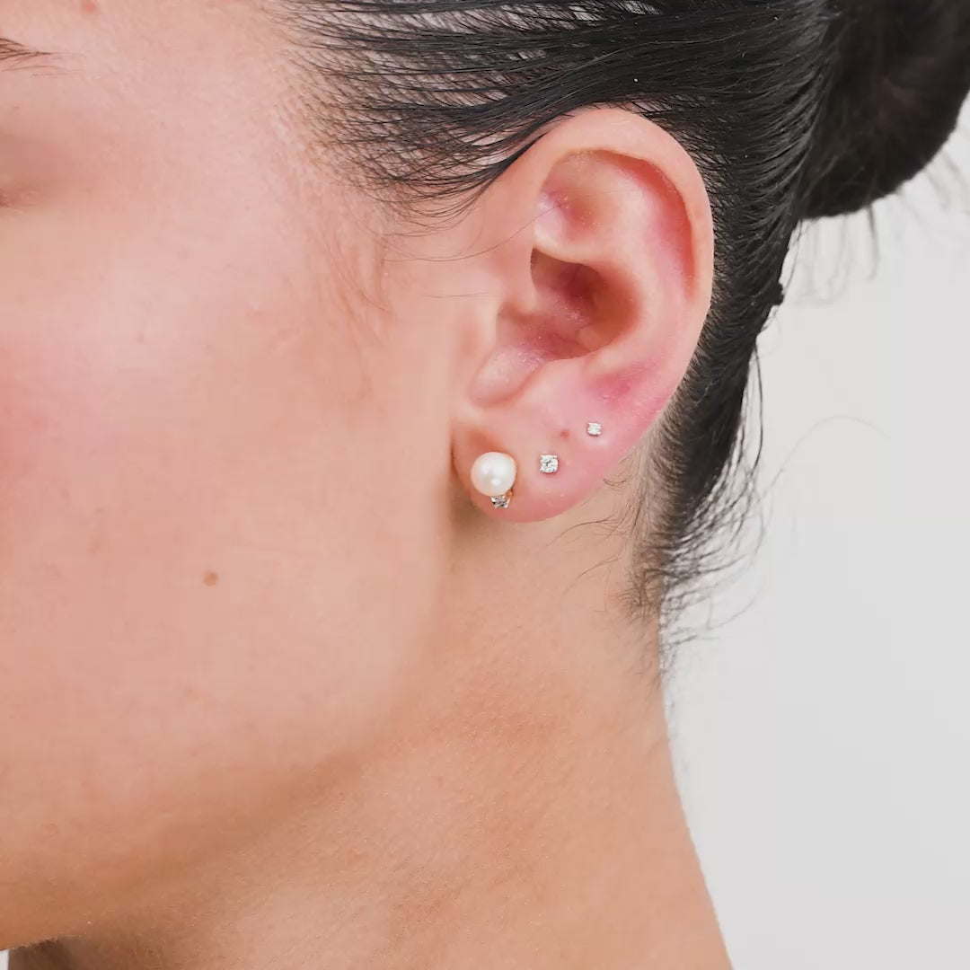Cultured  Pearl & Illusion Diamond Stud Earrings