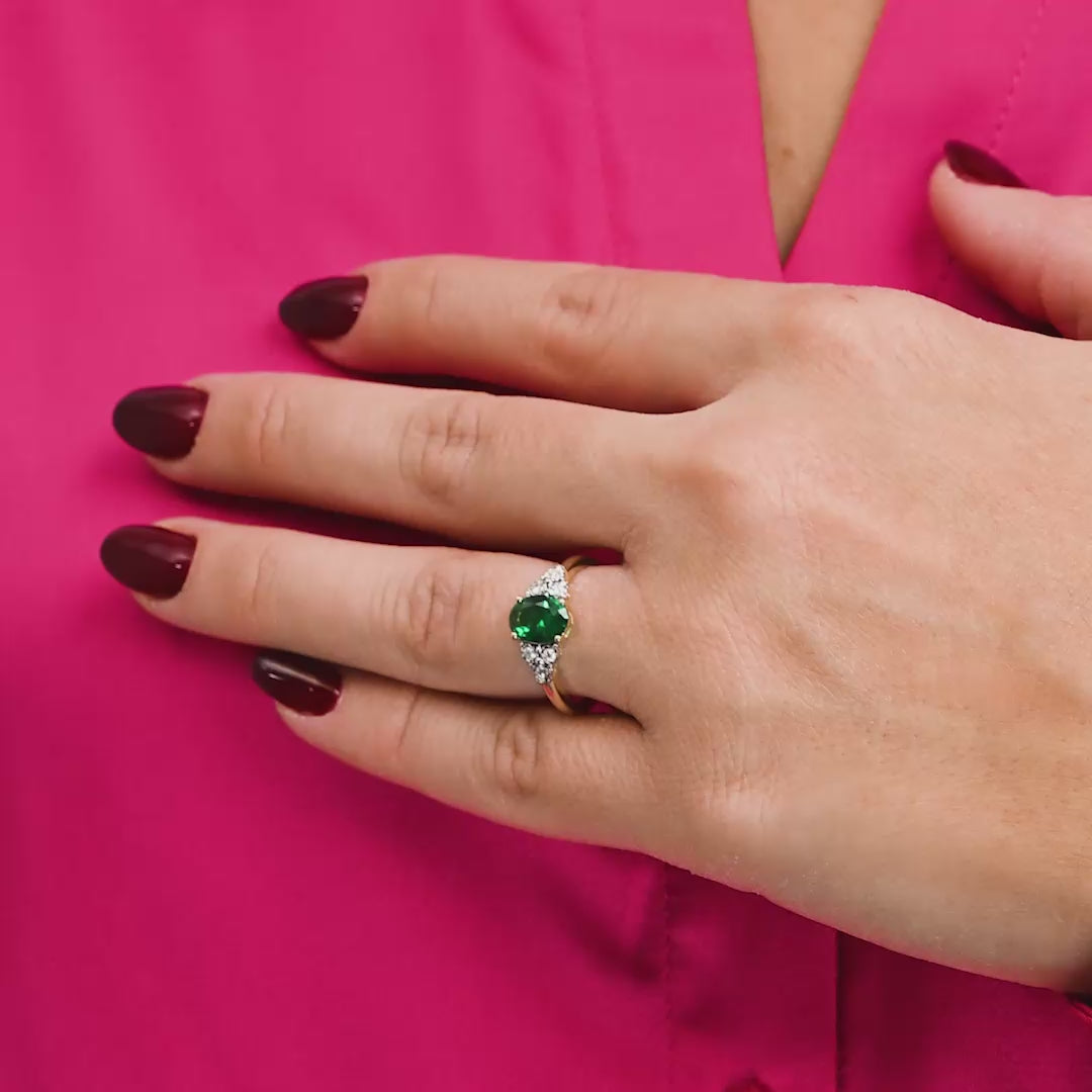 Oval Created Gemstone and Diamond Ring
