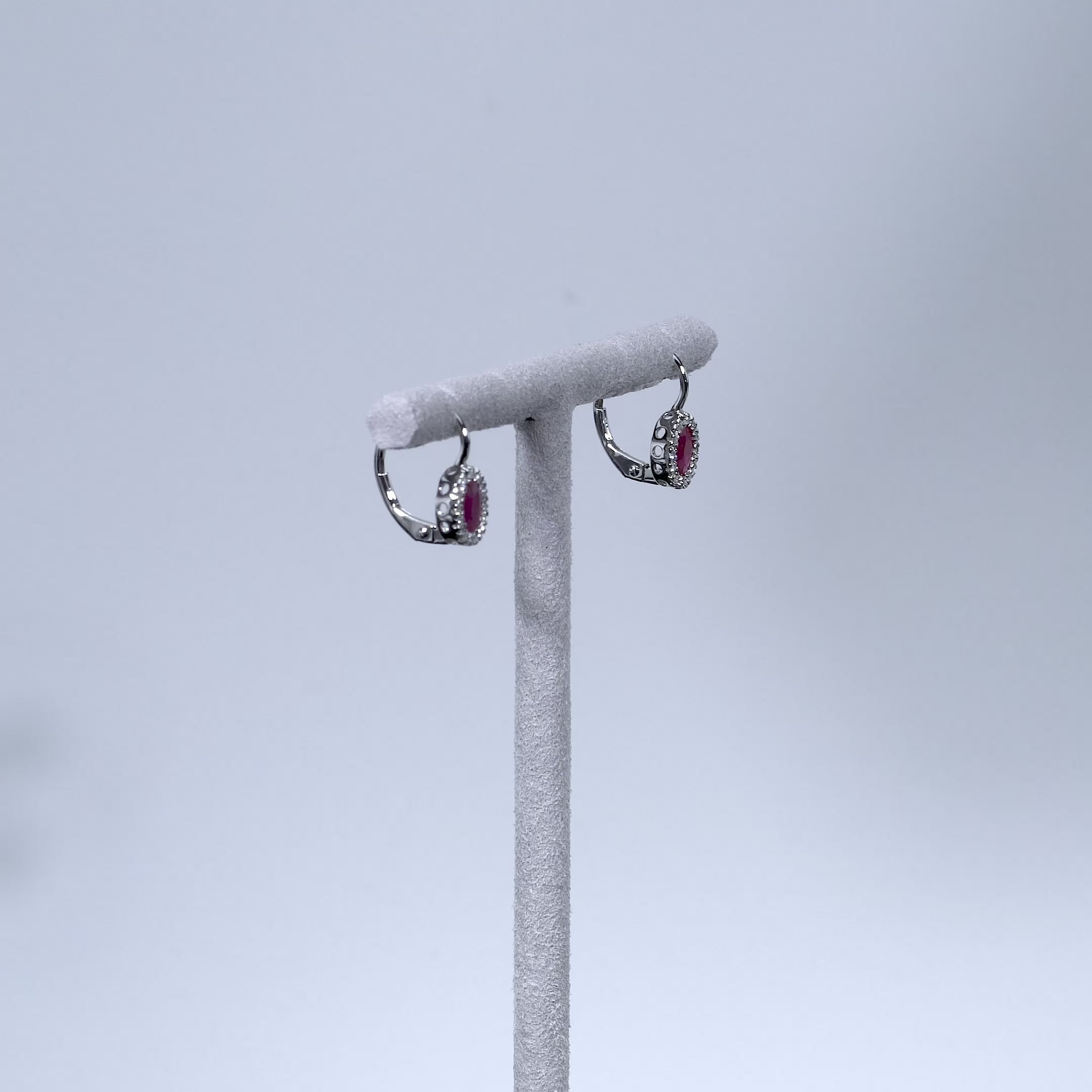 Oval Precious Stone & Diamond Halo Dangle Earrings