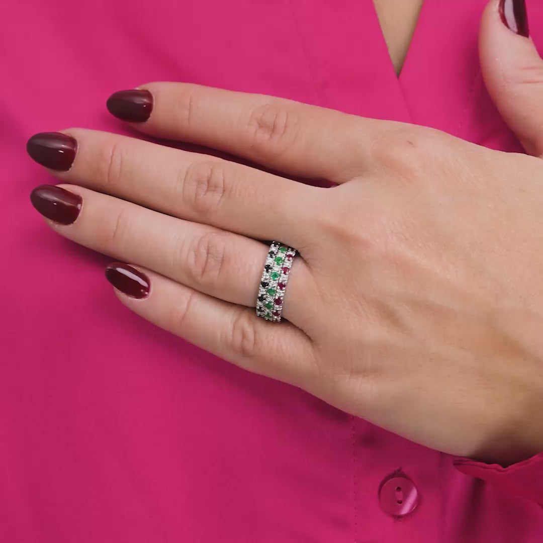 Semi Eternity Precious Stone and Diamond Ring